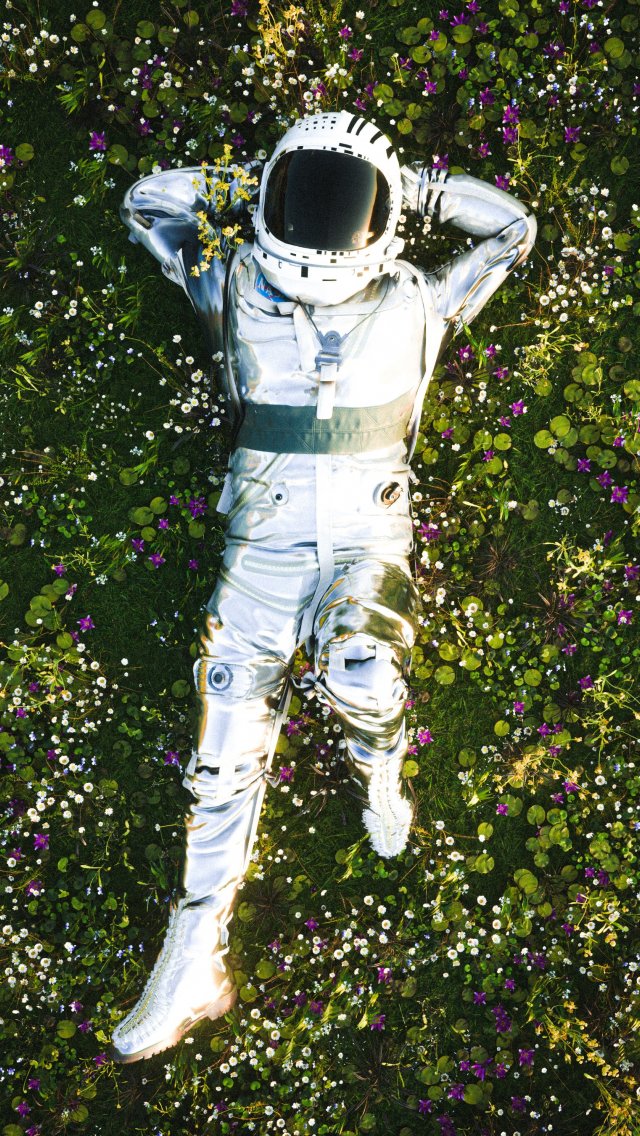Wallpaper: astronaut, grass, rest - 640x1136