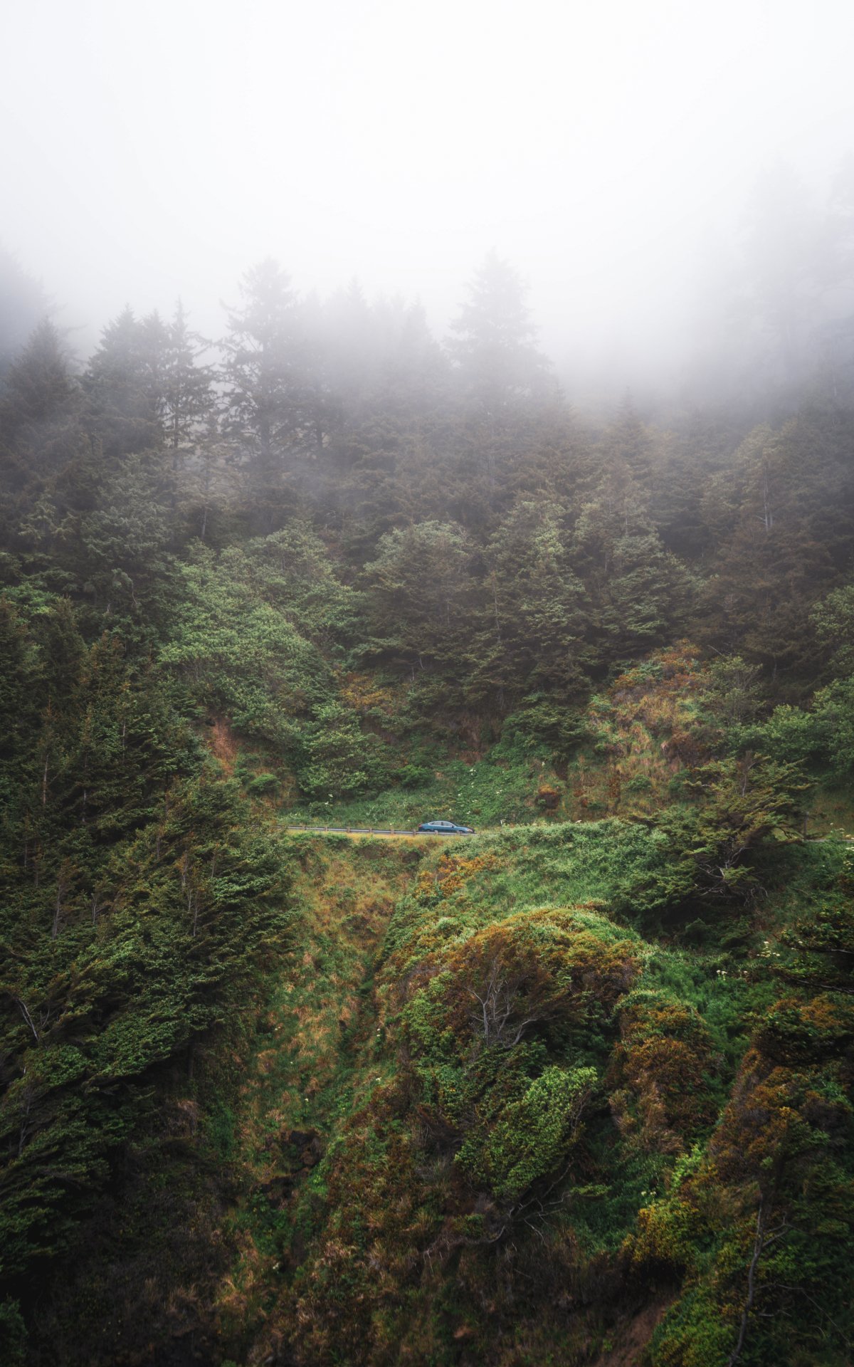 road, forest, fog Wallpaper 1200x1920