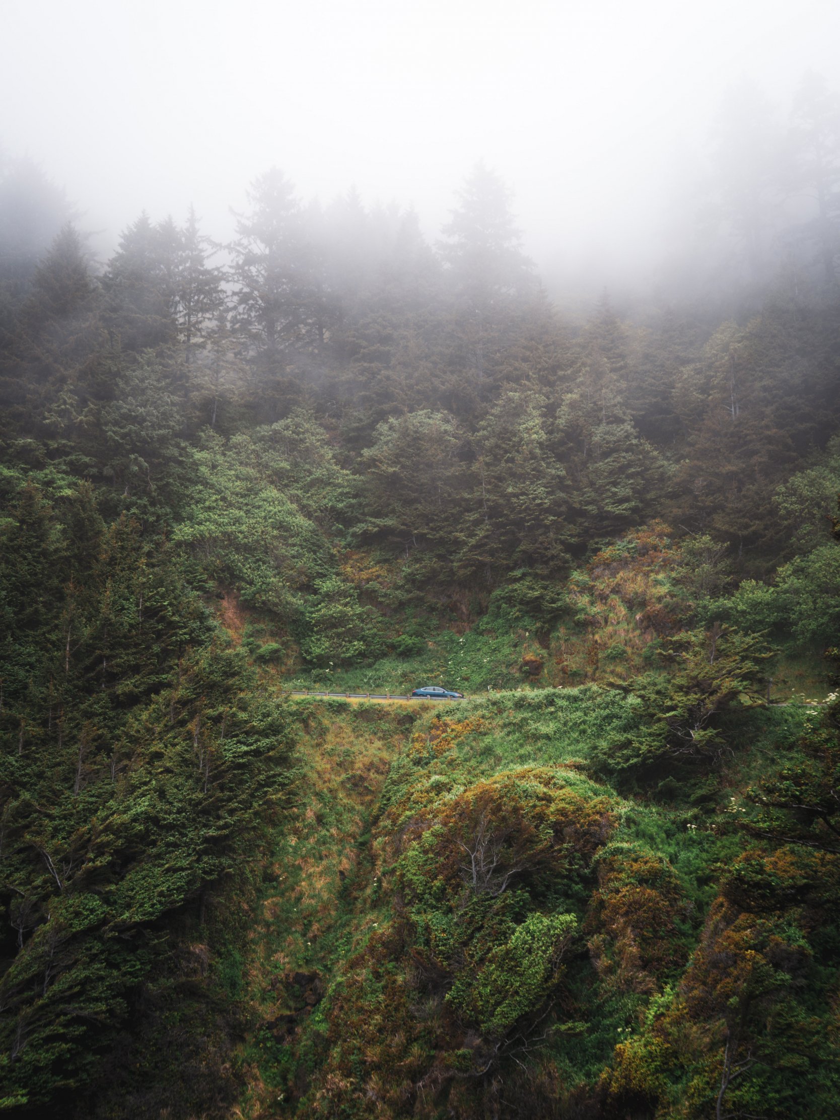 road, forest, fog Wallpaper 1668x2224