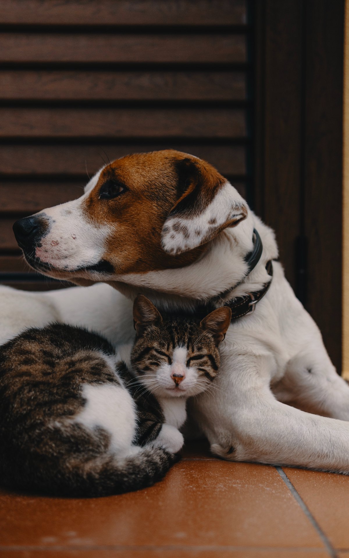 Wallpaper: friendship, cat, dog - 1200x1920