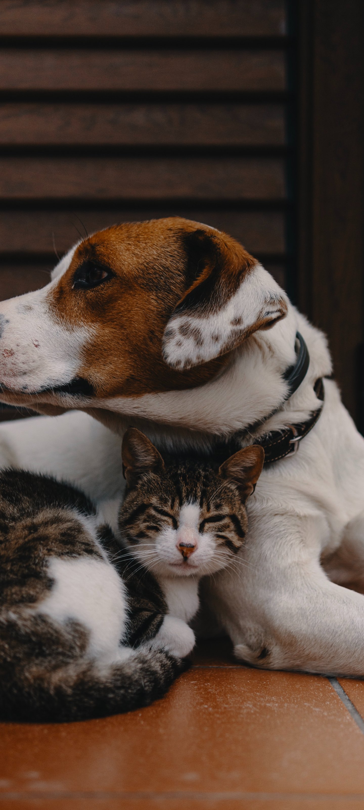 Wallpaper: friendship, cat, dog - 1440x3200