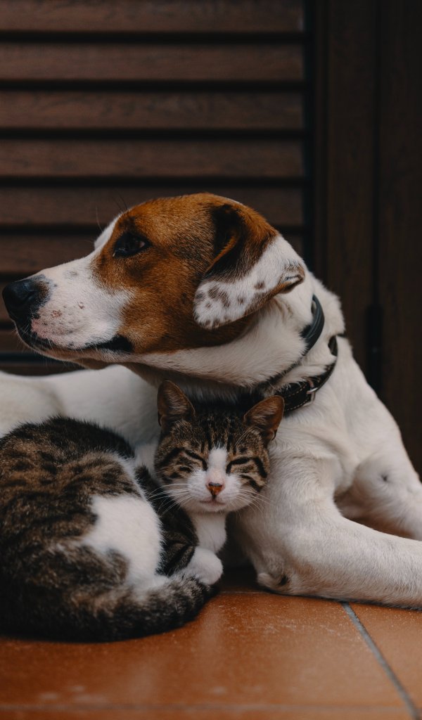 Wallpaper: friendship, cat, dog - 600x1024