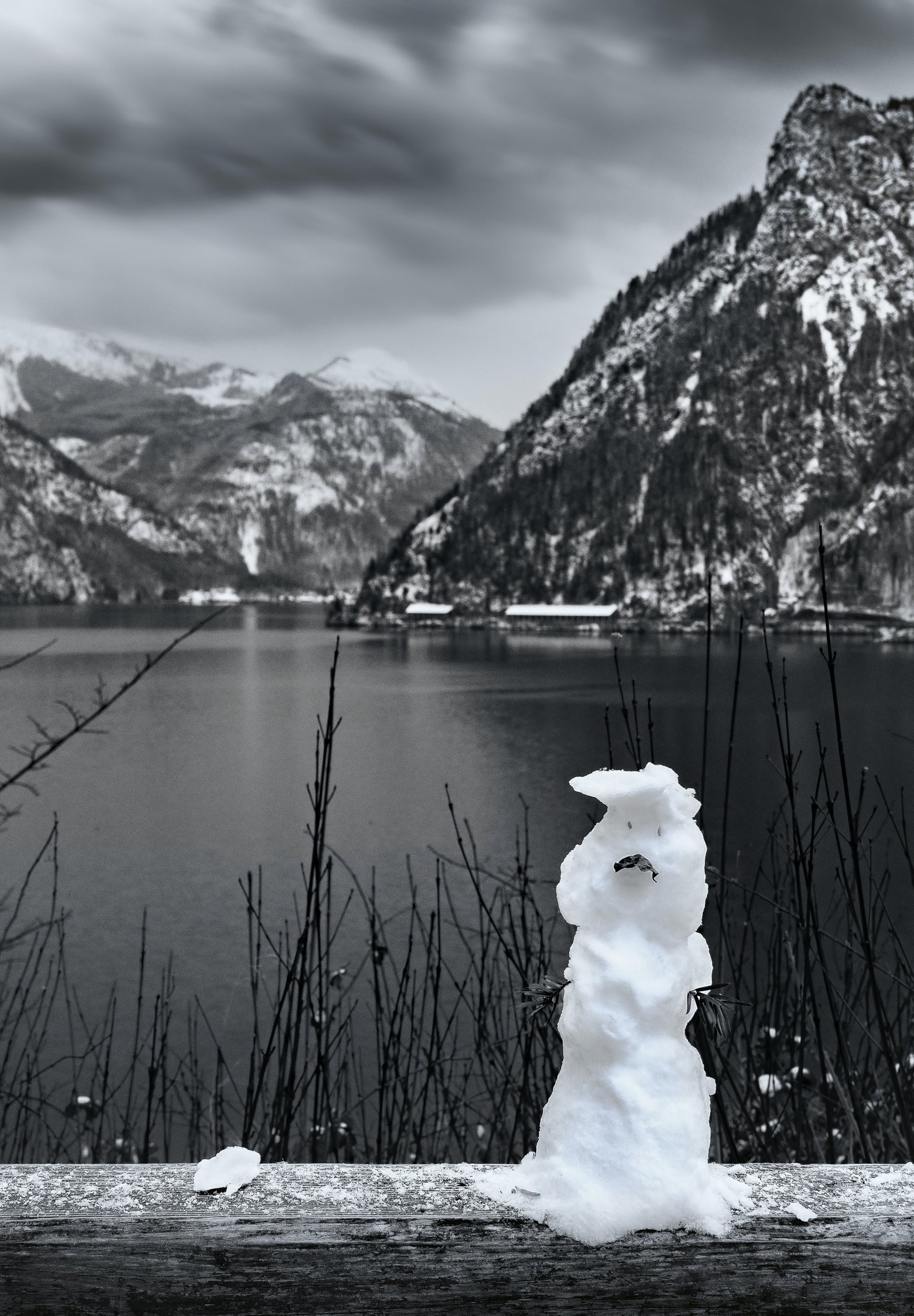 Wallpaper: mountains, lake, snowman - 1640x2360