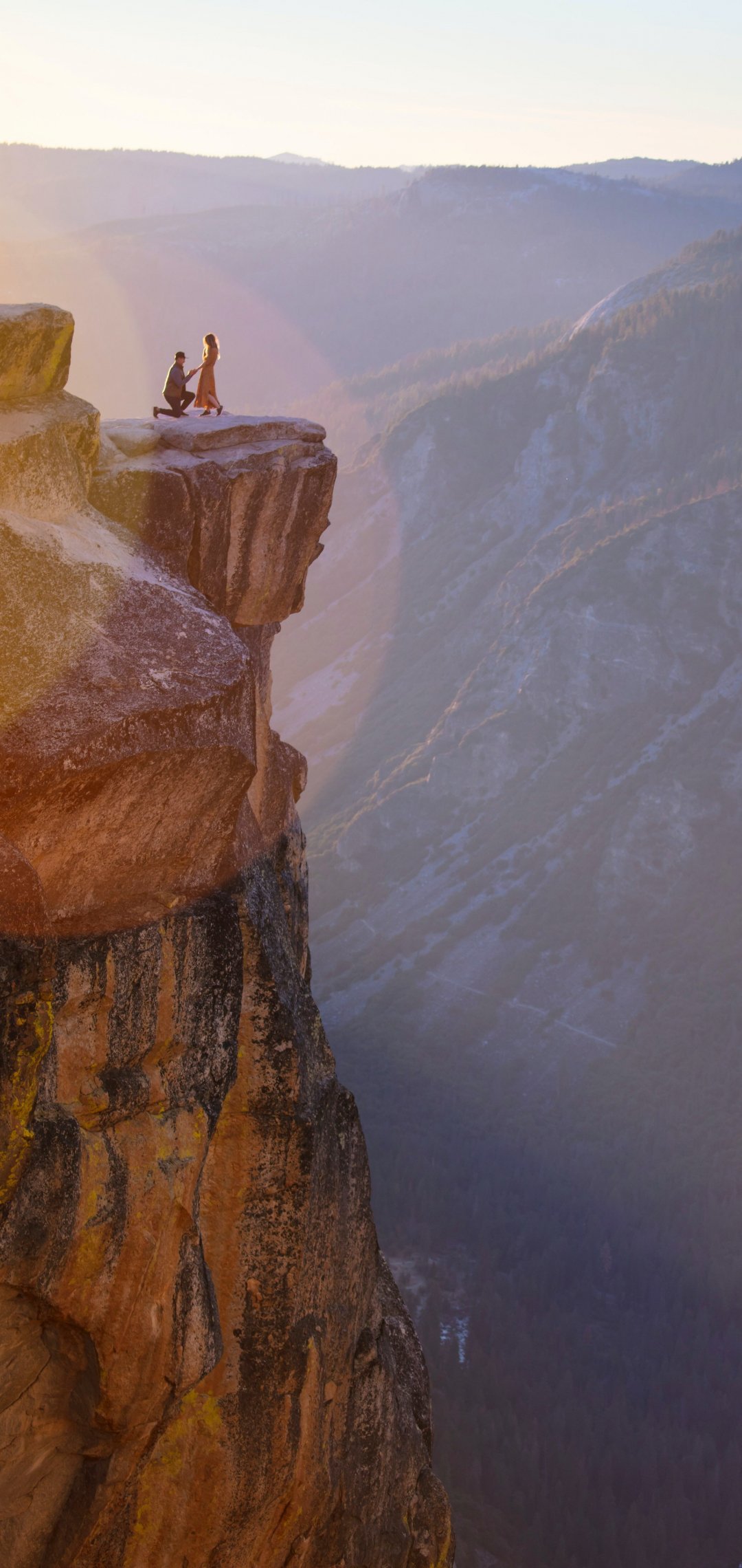 Wallpaper: mountains, man, proposal - 1080x2280