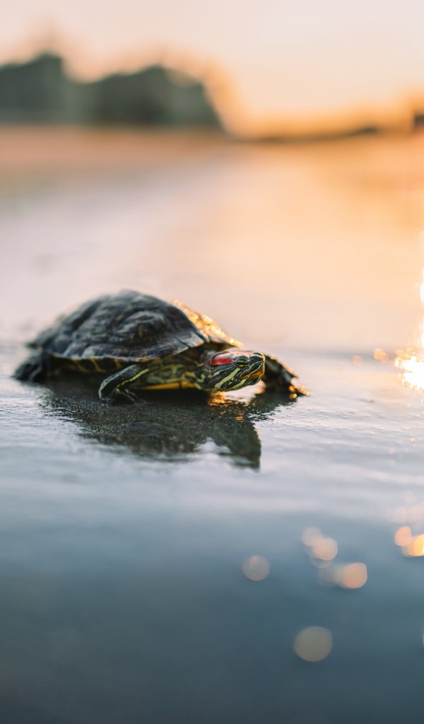 Wallpaper: turtle, sand, sea, sun - 600x1024