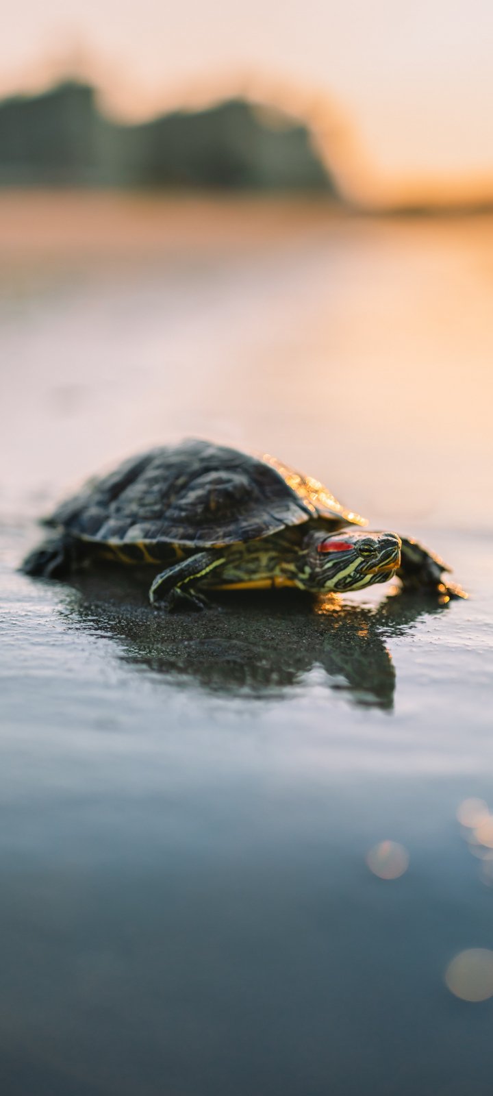 Wallpaper: turtle, sand, sea, sun - 720x1600