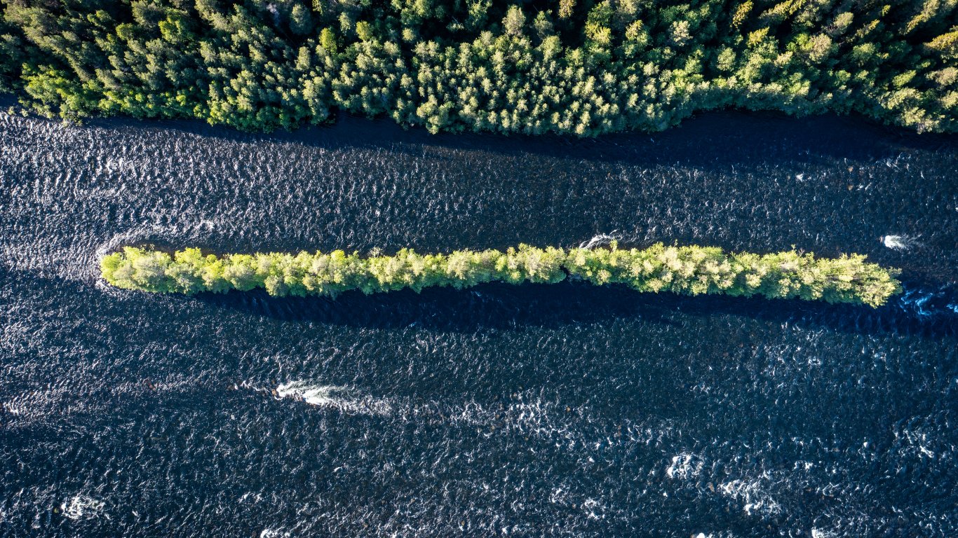 Wallpaper: forest, river, bird's eye view - 1366x768
