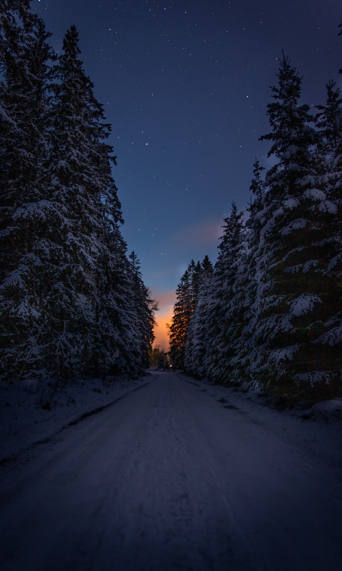Wallpaper: winter road, night - 1200x2000