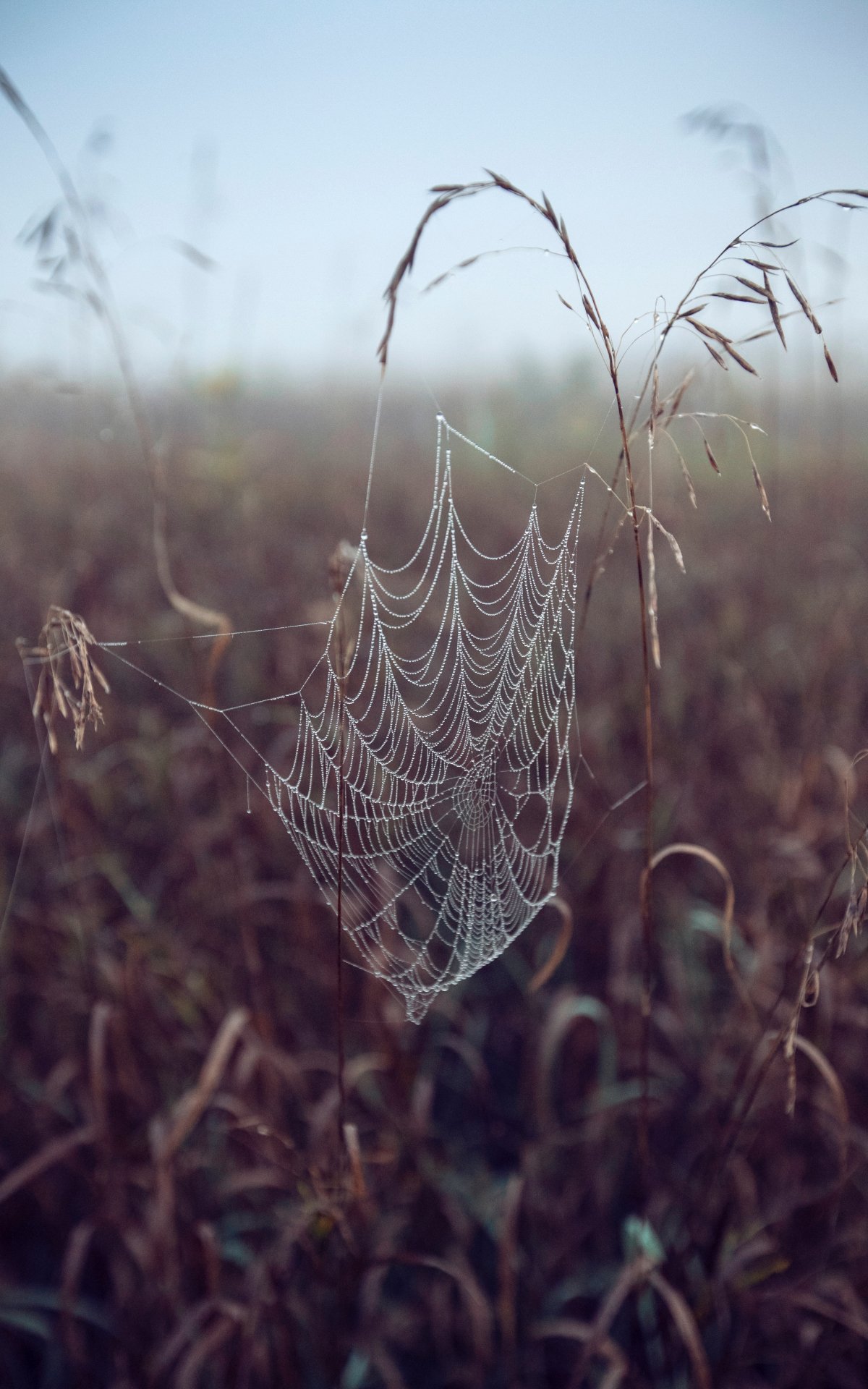 Wallpaper: spider web, pole, morning, dew - 1200x1920