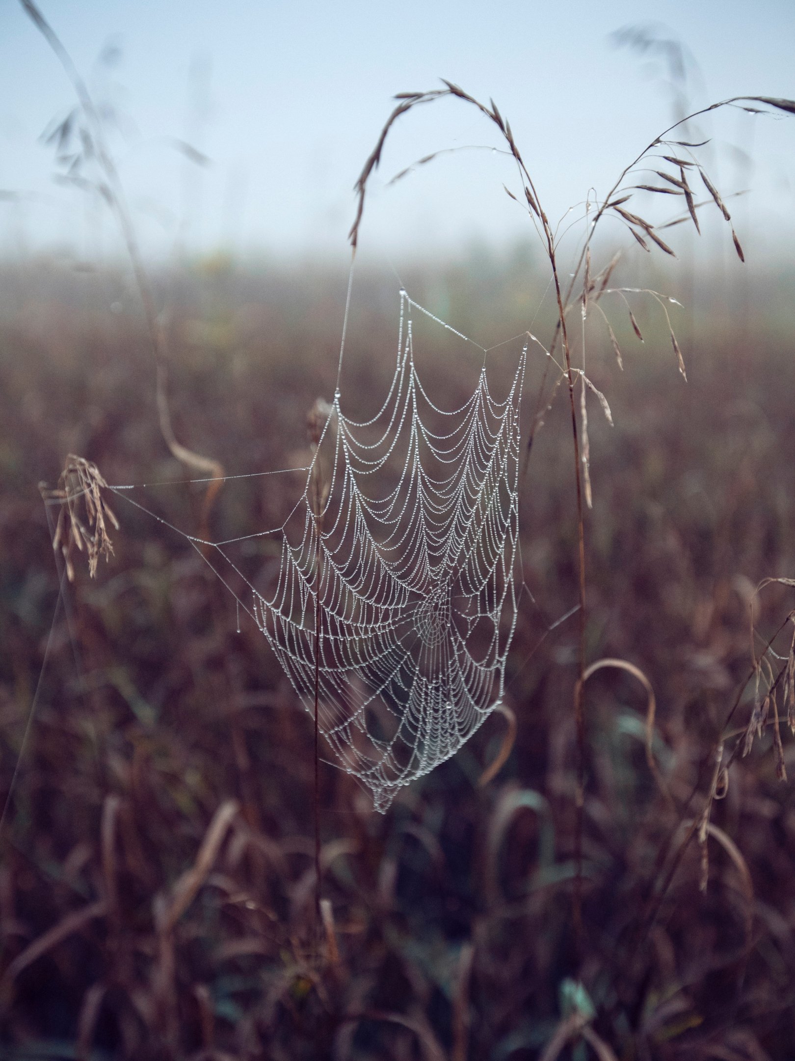 Wallpaper: spider web, pole, morning, dew - 1620x2160