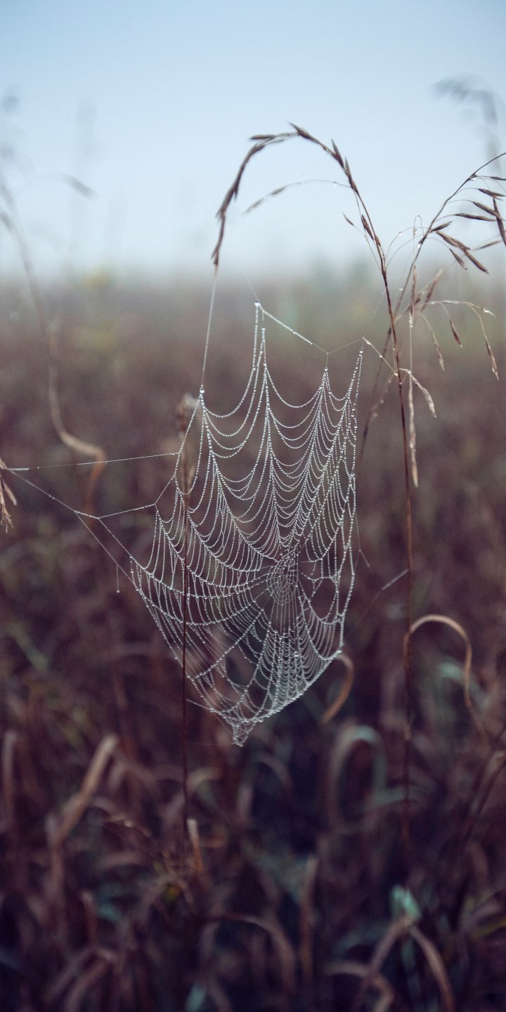 Wallpaper: spider web, pole, morning, dew - 720x1440