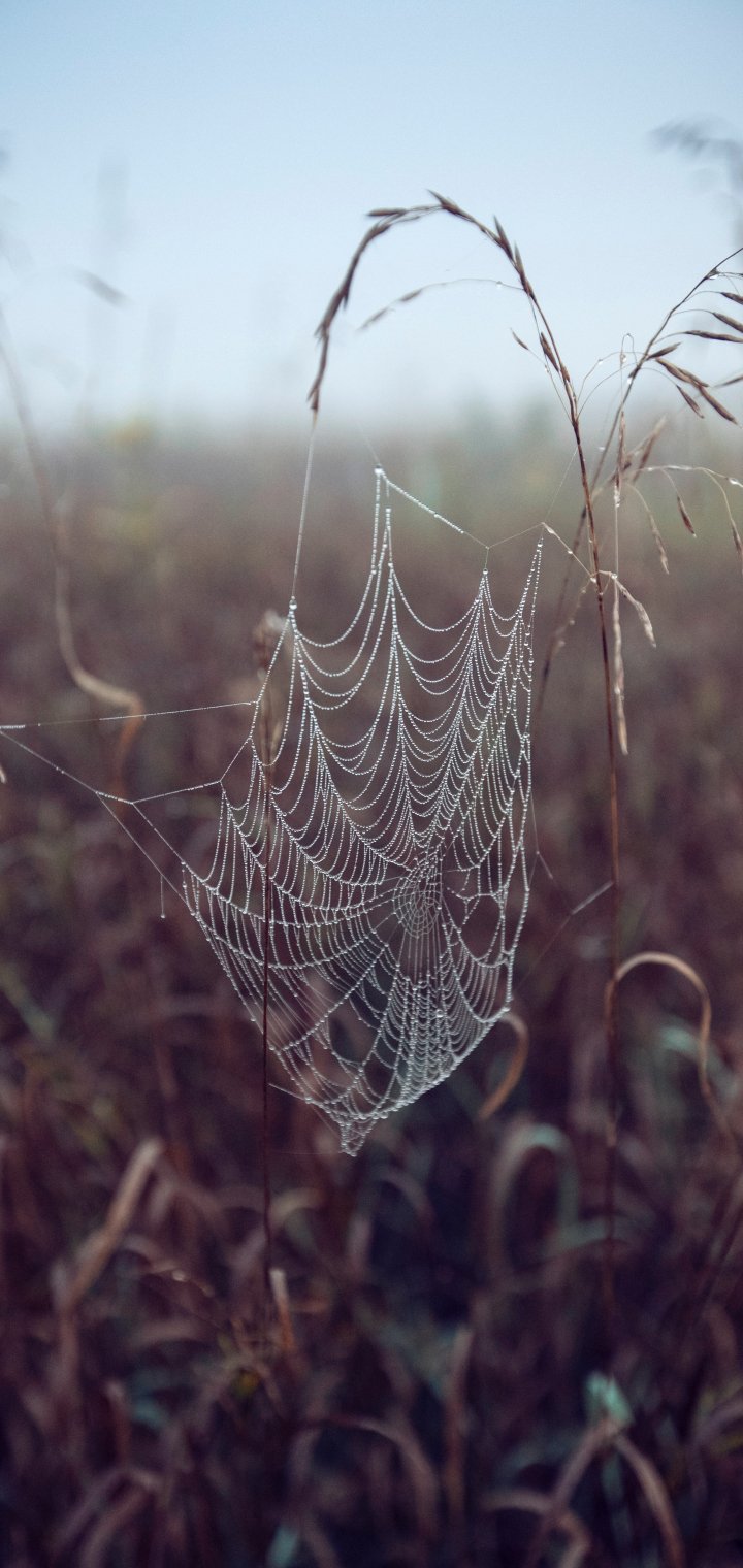 Wallpaper: spider web, pole, morning, dew - 720x1520