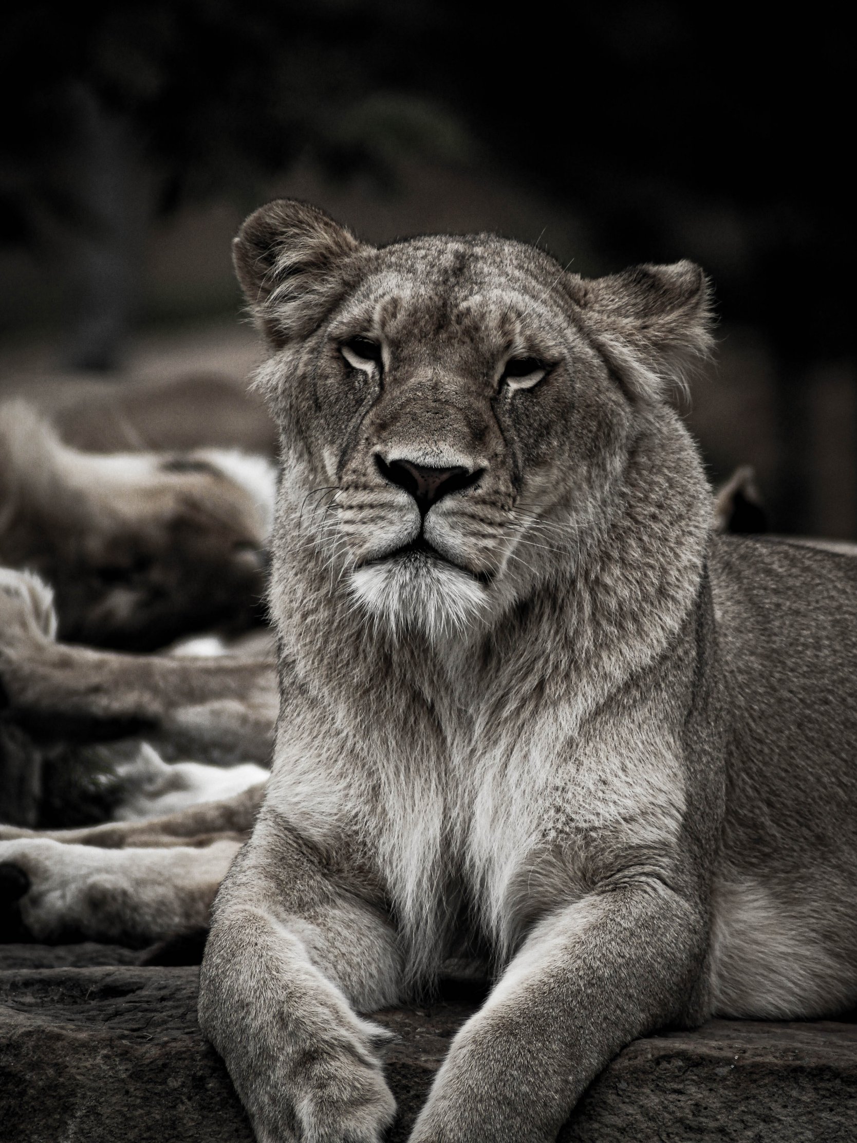 Wallpaper: lioness, achromatic - 1668x2224