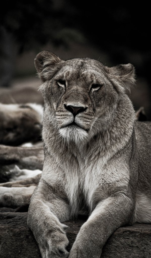 Wallpaper: lioness, achromatic - 600x1024