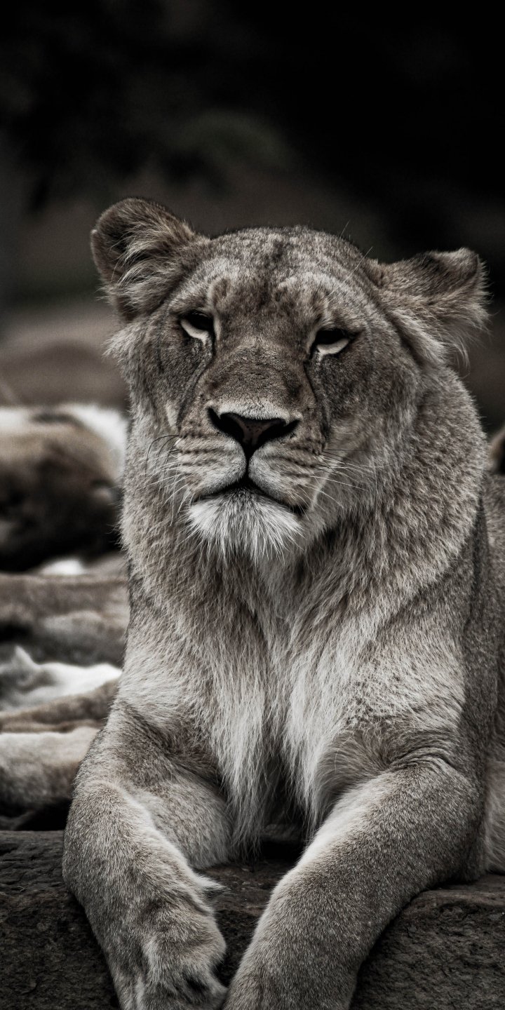 Wallpaper: lioness, achromatic - 720x1440