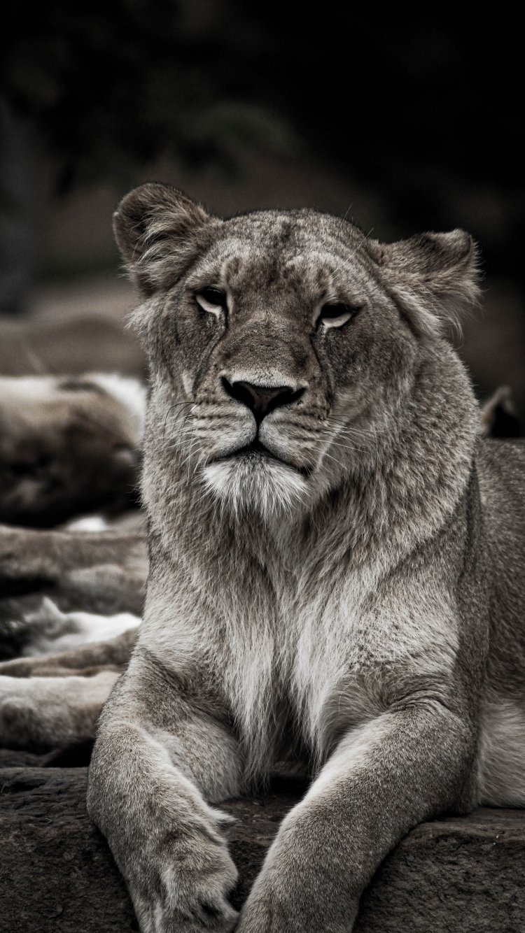 Wallpaper: lioness, achromatic - 750x1334