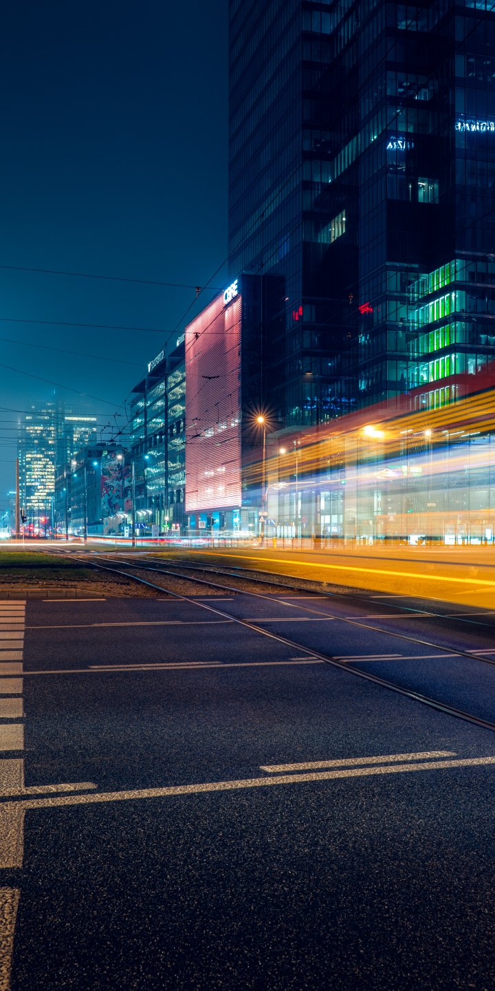 Wallpaper: night city skyscrapers night long exposure - 720x1440