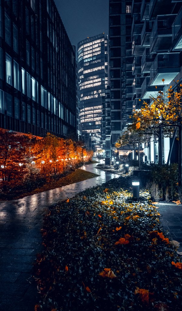 Wallpaper: night city streets of the city streets of the city skyscrapers - 600x1024