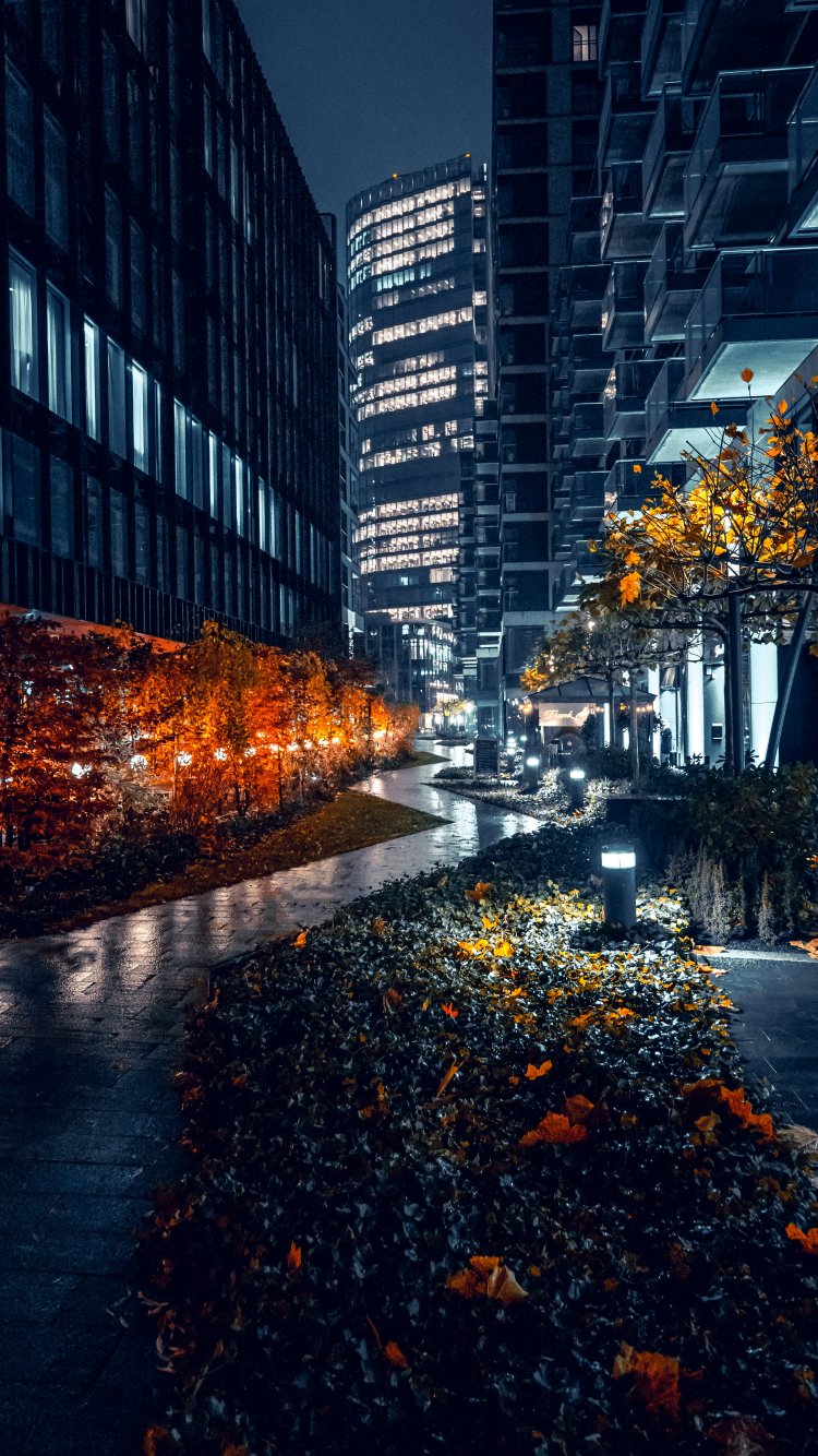 Wallpaper: night city streets of the city streets of the city skyscrapers - 750x1334