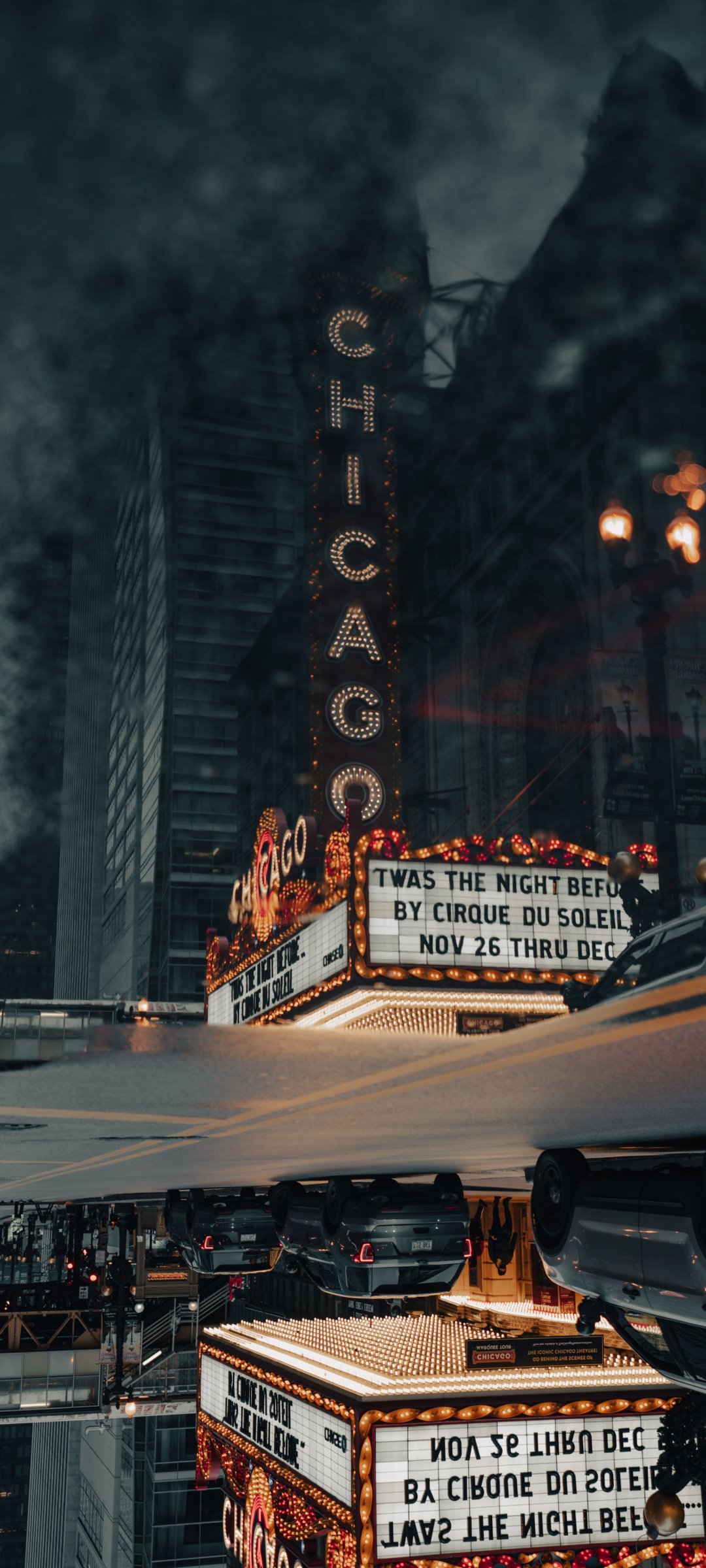 Wallpaper: street photography theater street puddle reflection metropolis city office building downtown chicago - 1080x2400