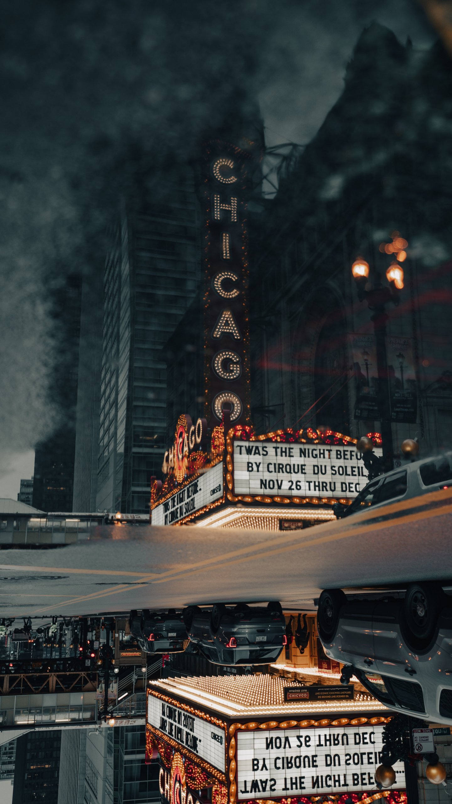 Wallpaper: street photography theater street puddle reflection metropolis city office building downtown chicago - 1440x2560