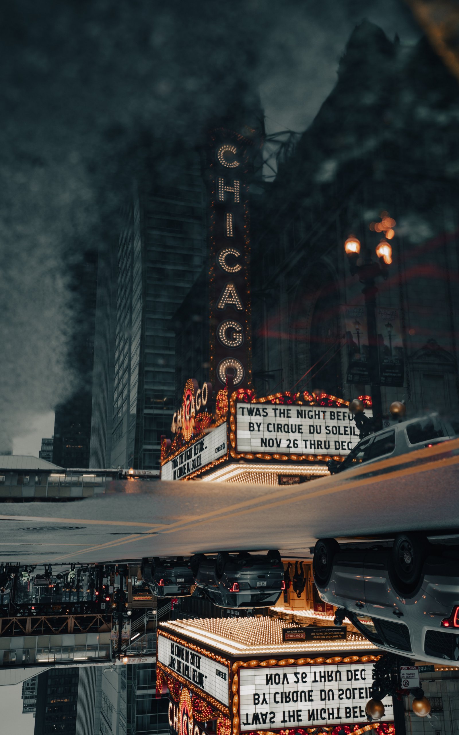 Wallpaper: street photography theater street puddle reflection metropolis city office building downtown chicago - 1600x2560