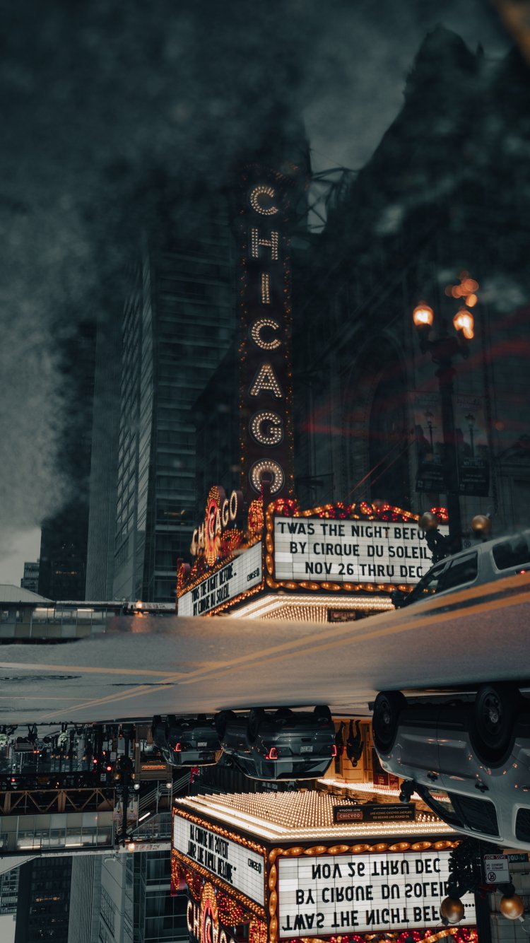 Wallpaper: street photography theater street puddle reflection metropolis city office building downtown chicago - 750x1334