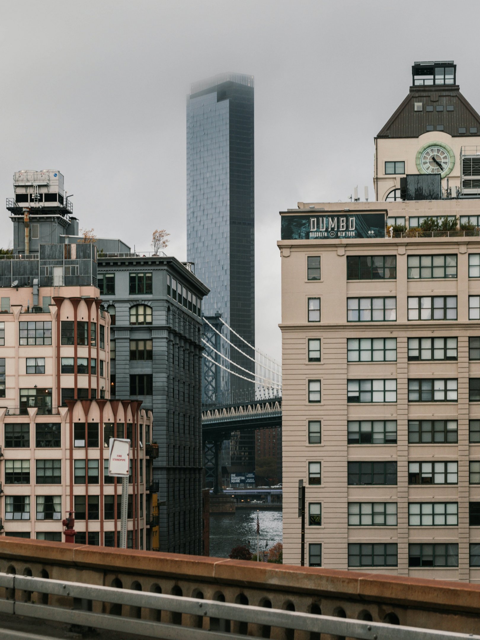 Wallpaper: Dambo, Brooklyn, New York, USA Dumbo Brooklyn new United States of America street photography Dumbo Brooklyn foggy real estate description Dumbo bridge fog architectural Manhattan bridge skyscraper city - 1620x2160