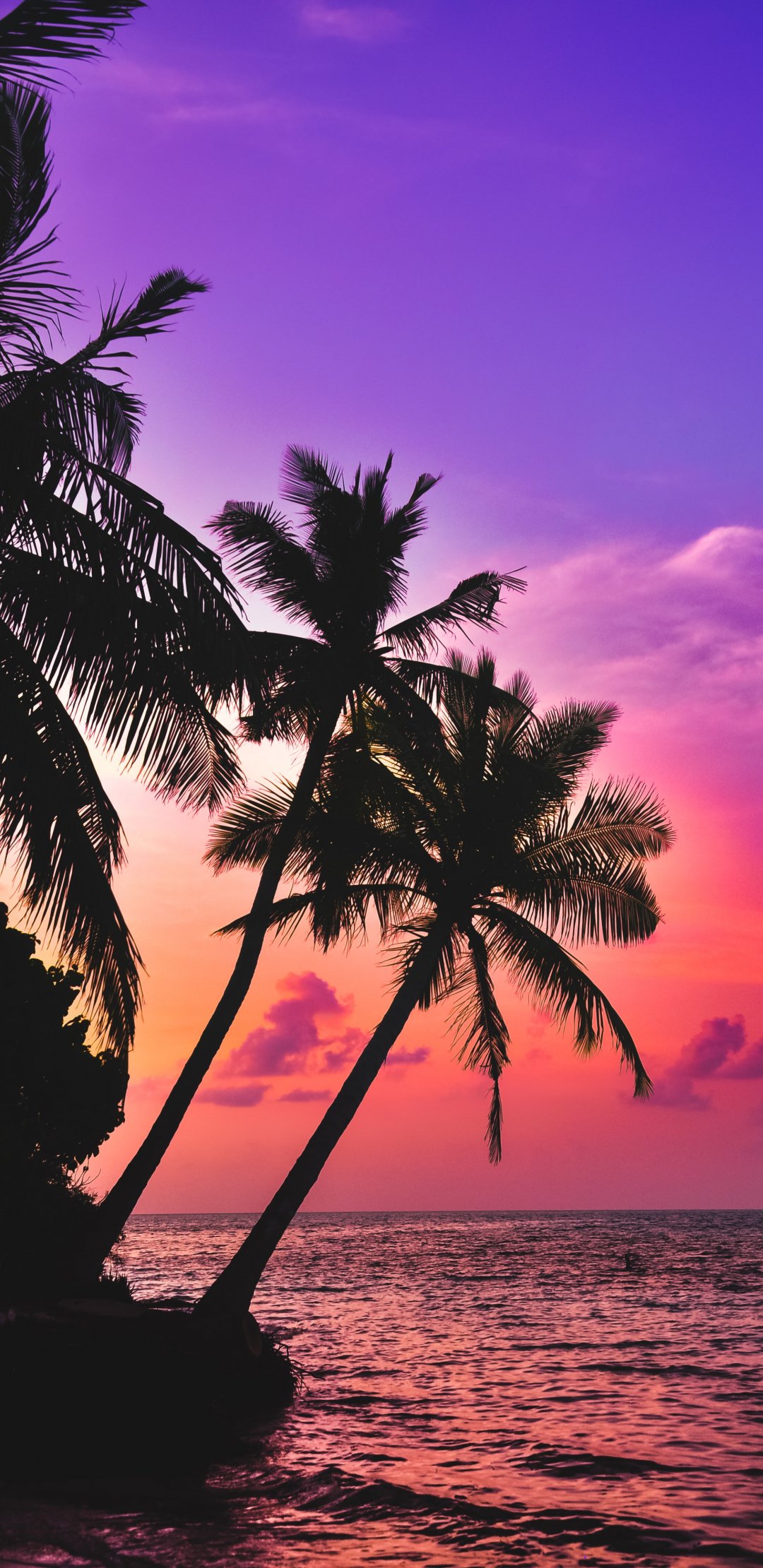 Wallpaper: Maldives, palm trees, sunset - 1080x2220