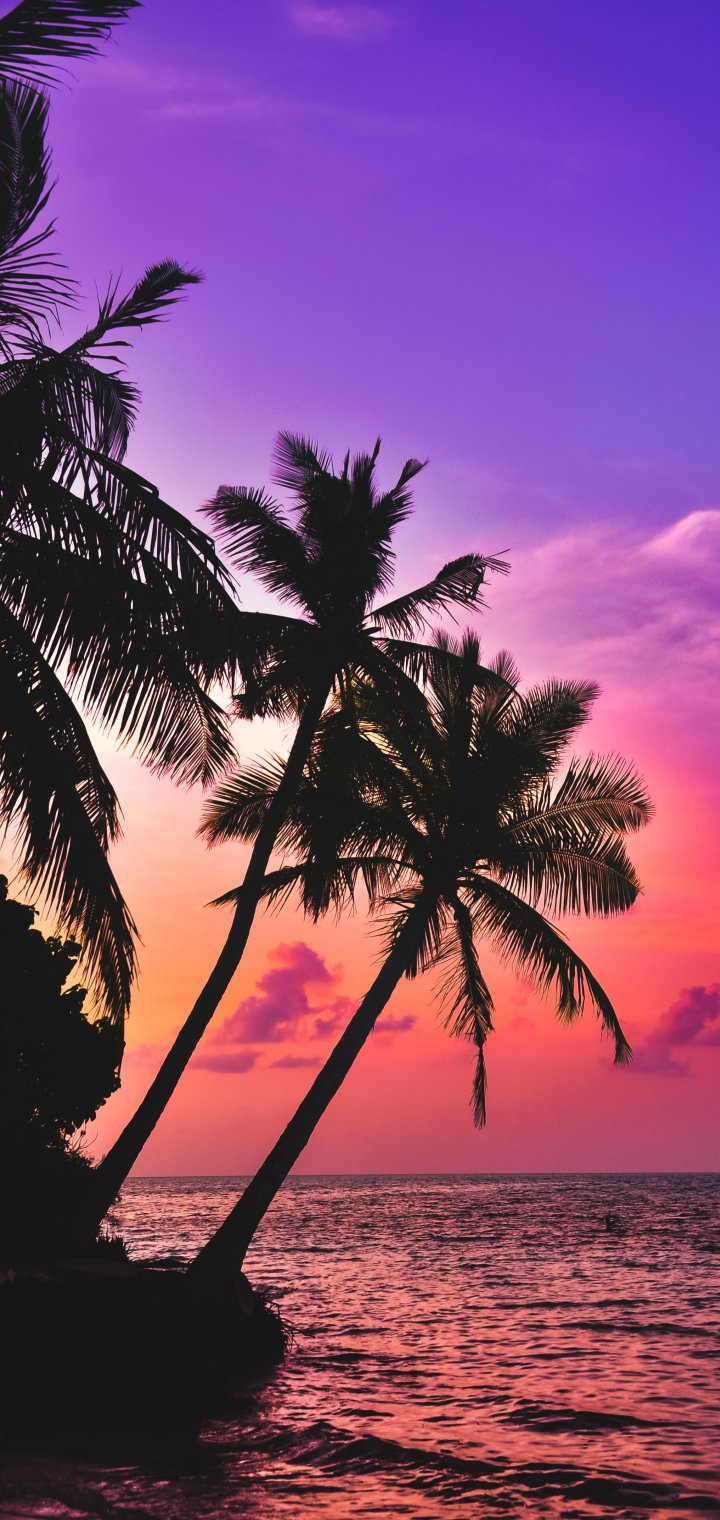 Wallpaper: Maldives, palm trees, sunset - 720x1520