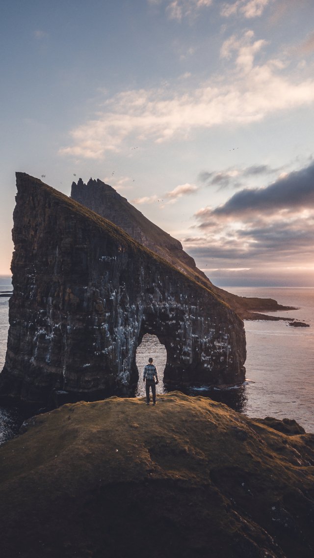 Wallpaper: Дрангарнир, Faroe Islands Drangarnir Faroe Islands outdoors mountains and sea rocks rocks must faroe adventure - 640x1136