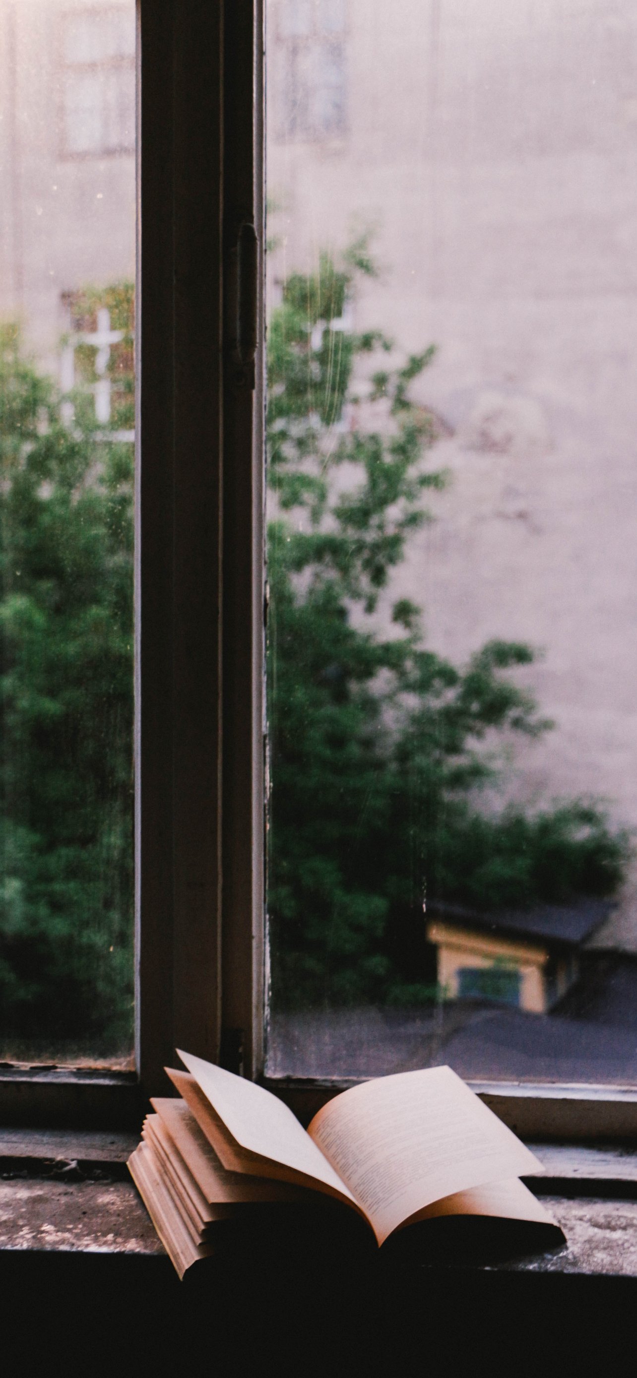 Wallpaper: book, window view, thoughts, minimalism - 1284x2778