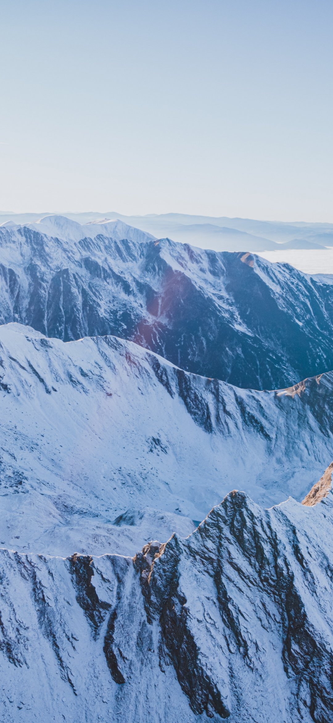 Wallpaper: snow in the mountains, mountains, winter, drone view - 1080x2340