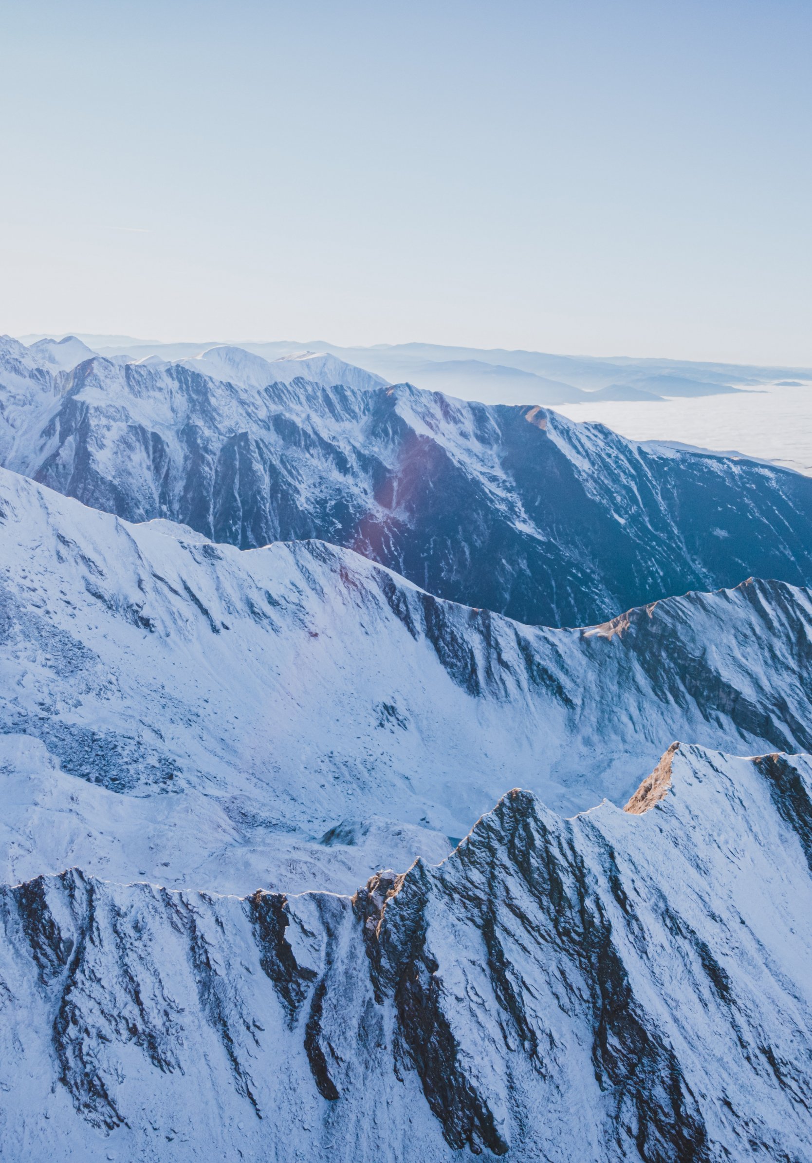 Wallpaper: snow in the mountains, mountains, winter, drone view - 1668x2388