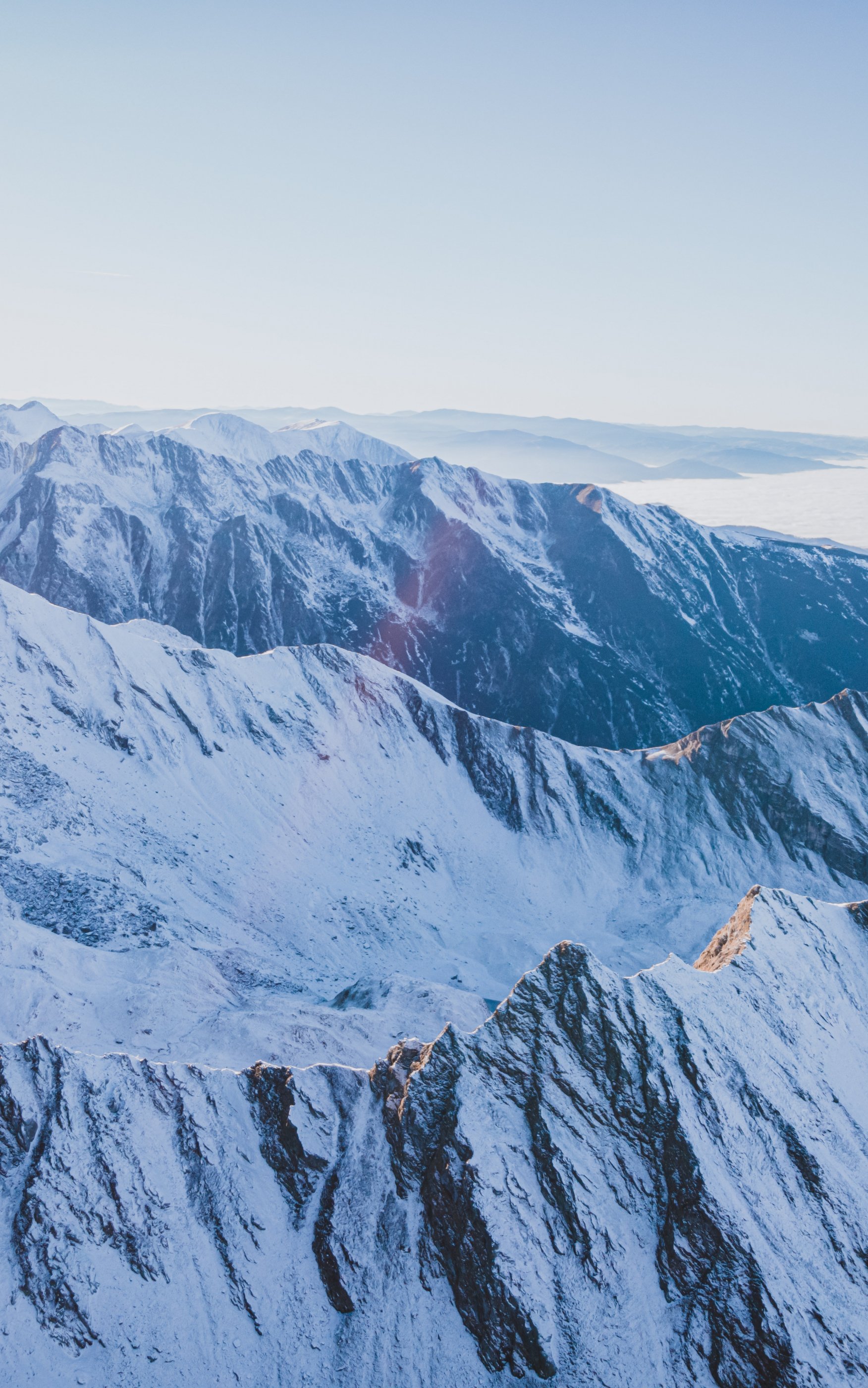 Wallpaper: snow in the mountains, mountains, winter, drone view - 1752x2800