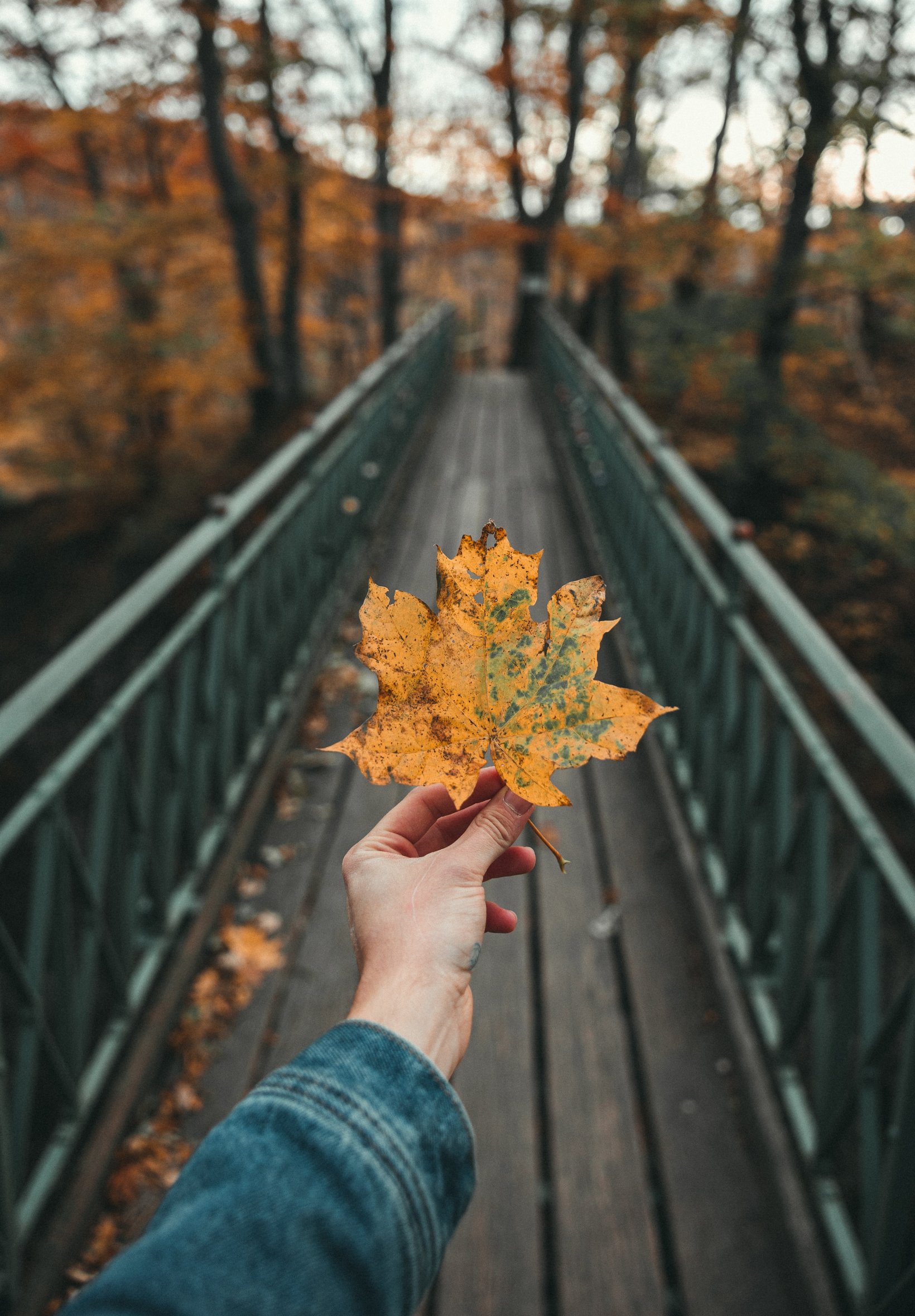 Wallpaper: autumn leaf, maple, bridge, autumn, forest - 1640x2360