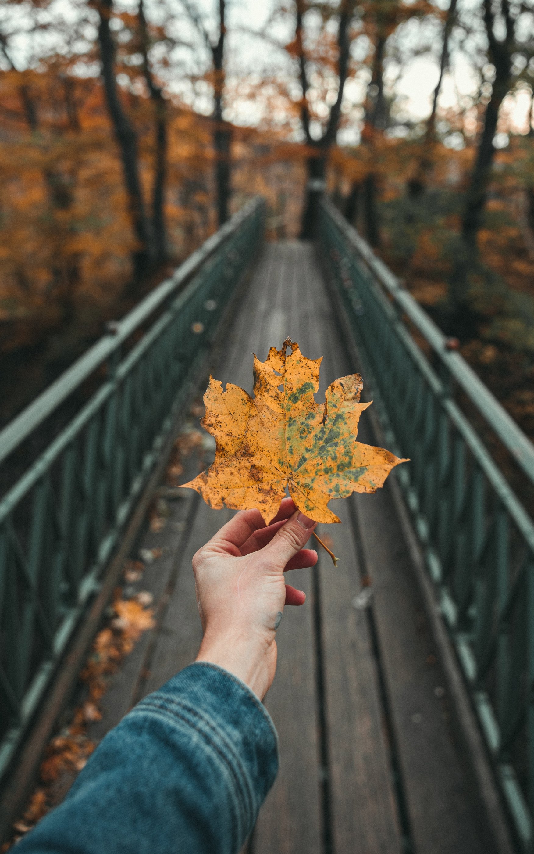 Wallpaper: autumn leaf, maple, bridge, autumn, forest - 1752x2800