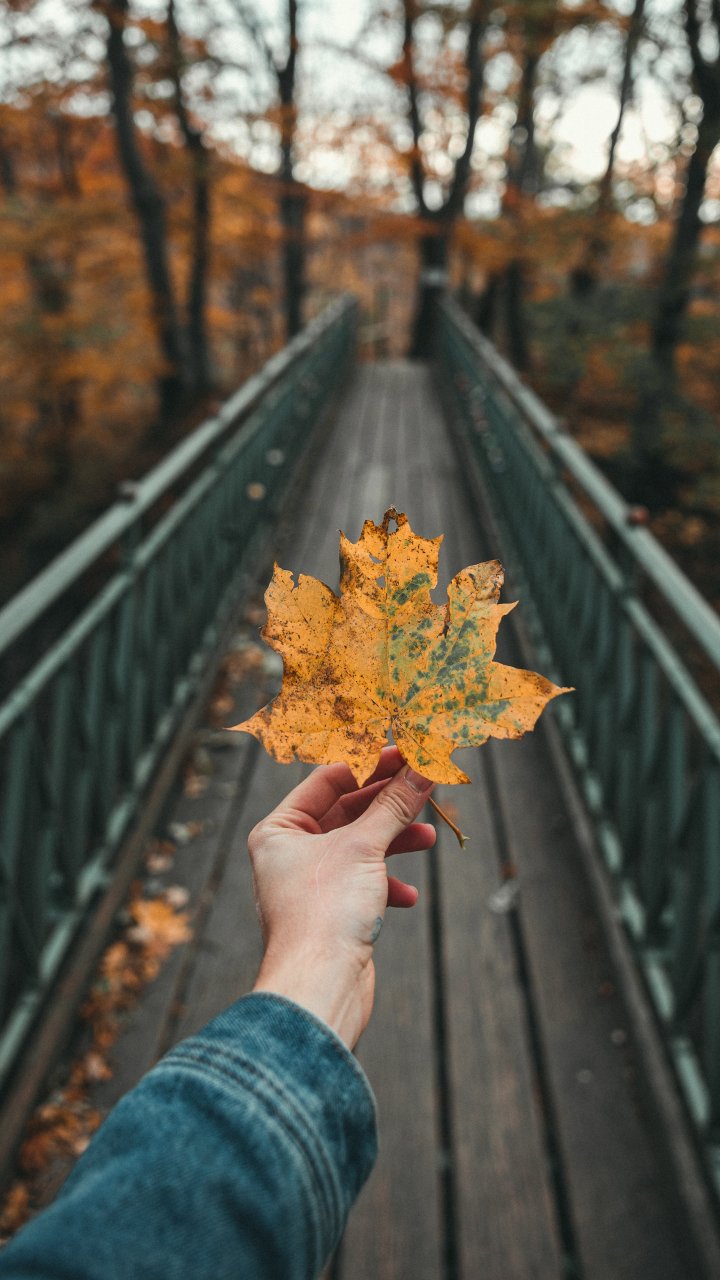 Wallpaper: autumn leaf, maple, bridge, autumn, forest - 720x1280