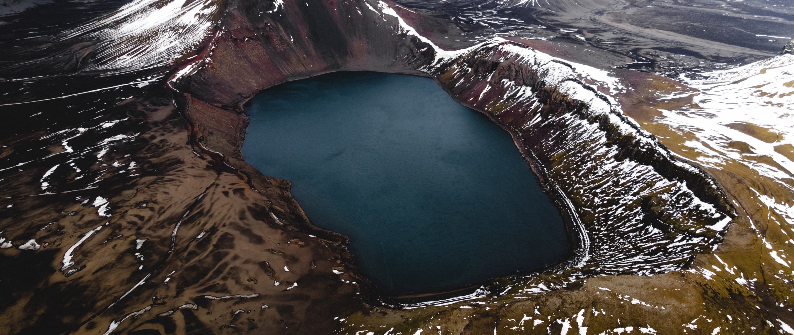 Wallpaper: lake, snow, mountains, snow mountains - 2560x1080