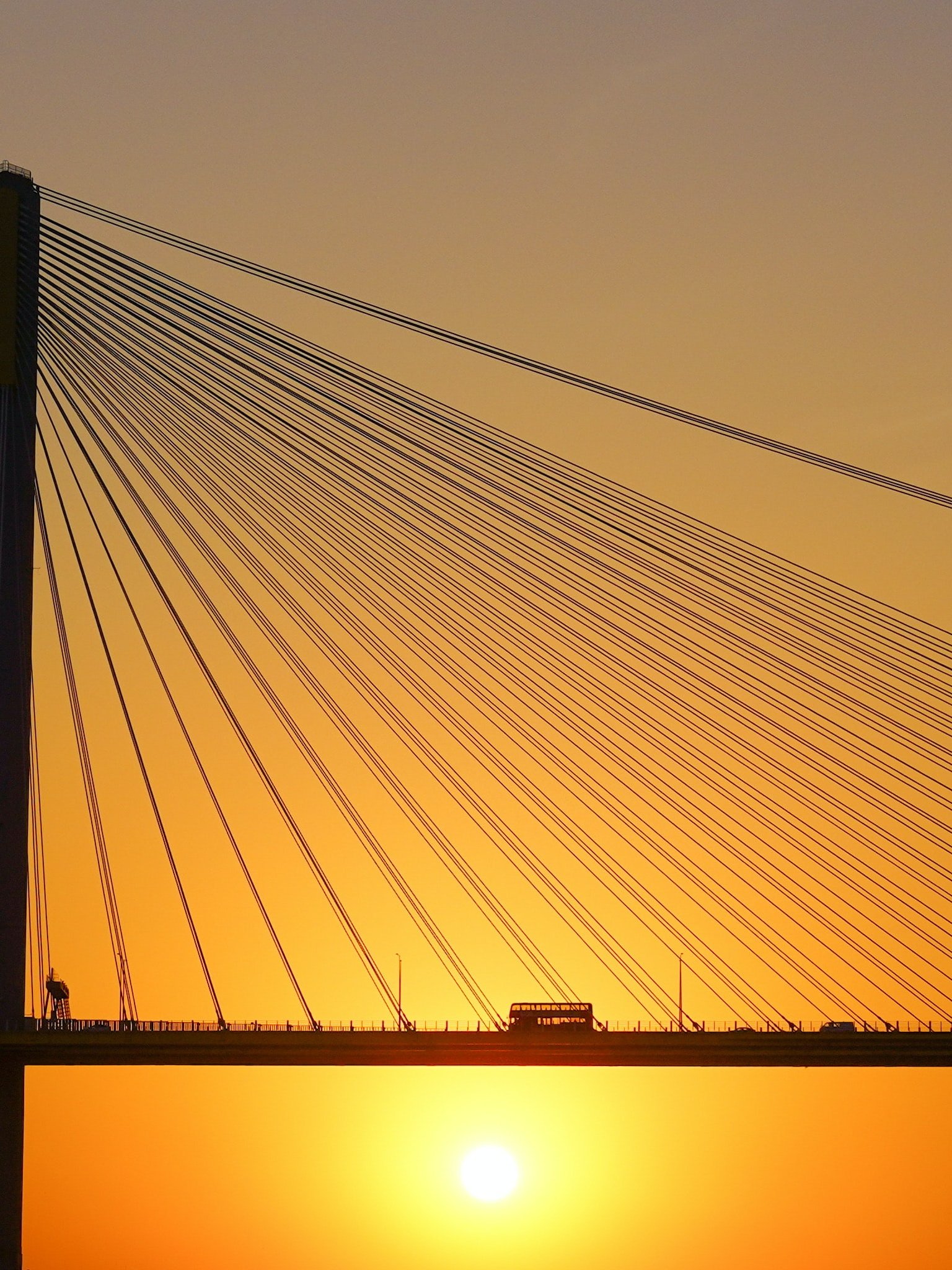 Wallpaper: bridge, sunset, bus, road - 1536x2048