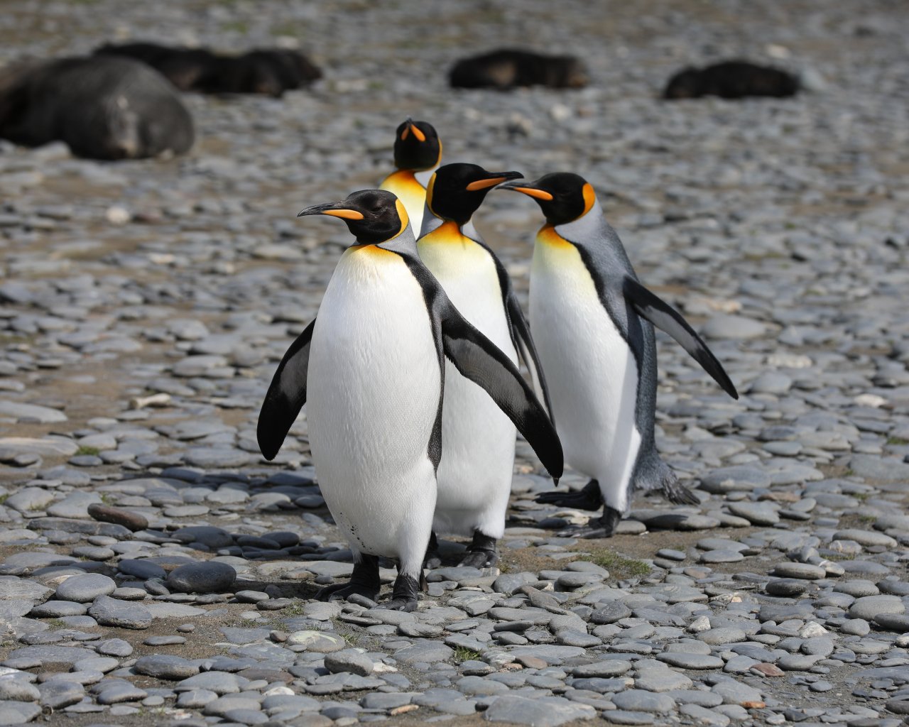 Wallpaper: penguins, wildlife, stones - 1280x1024