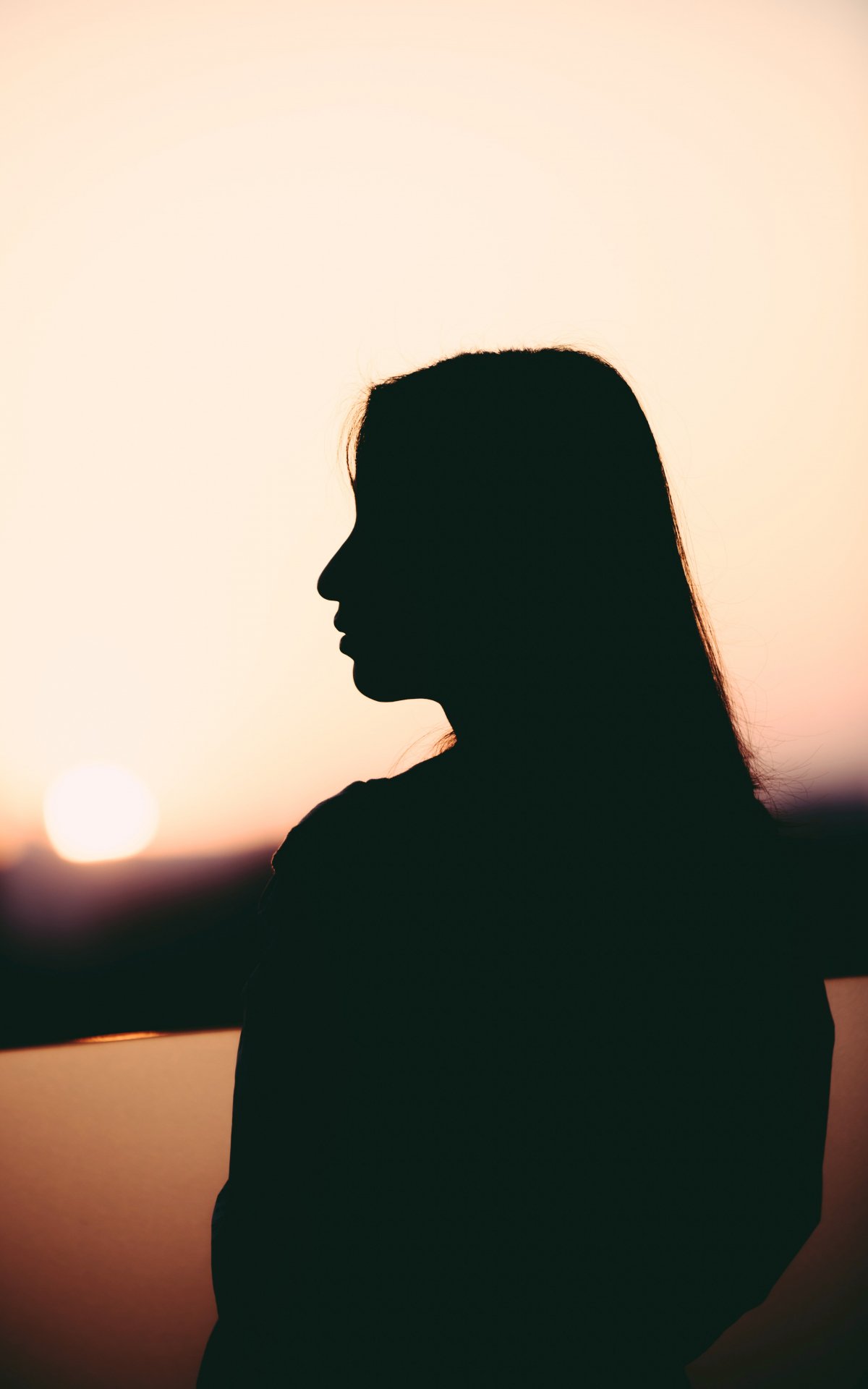 Wallpaper: girl, silhouette, sunset, profile - 1200x1920