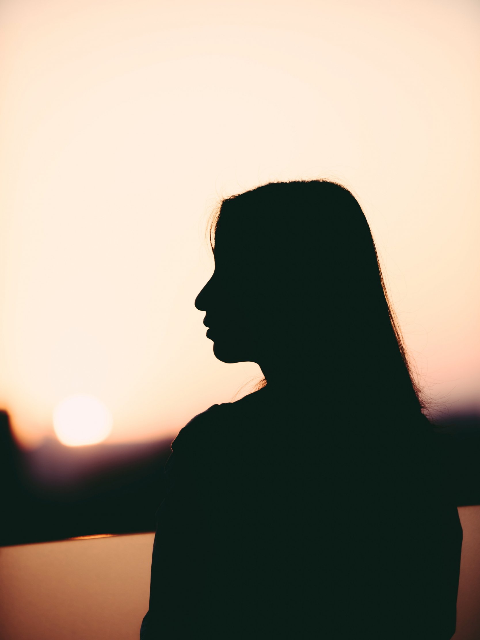 Wallpaper: girl, silhouette, sunset, profile - 1668x2224