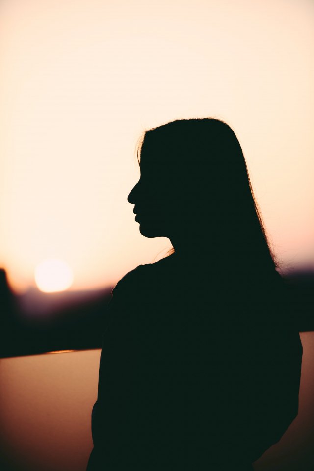 Wallpaper: girl, silhouette, sunset, profile - 640x960