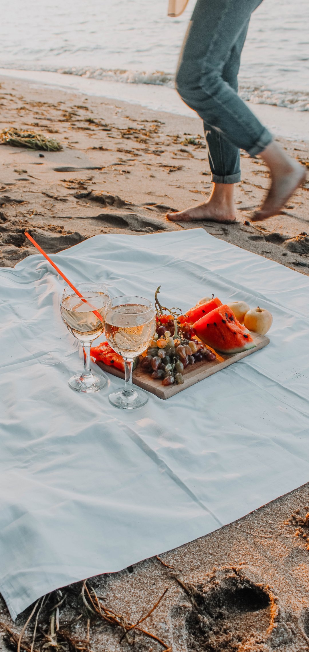Wallpaper: picnic, sparkling, beach, sand, romance - 1080x2280