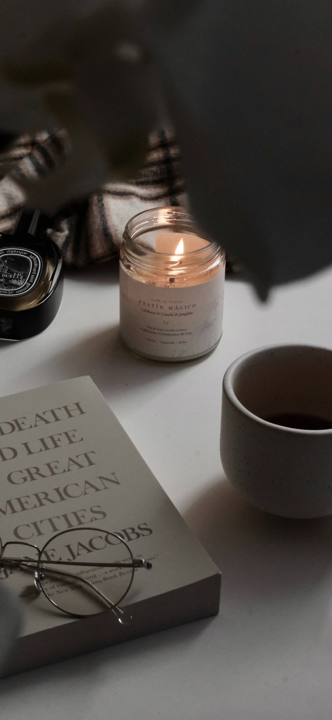 Wallpaper: candle, book, glasses, aesthetics, minimalism - 1125x2436