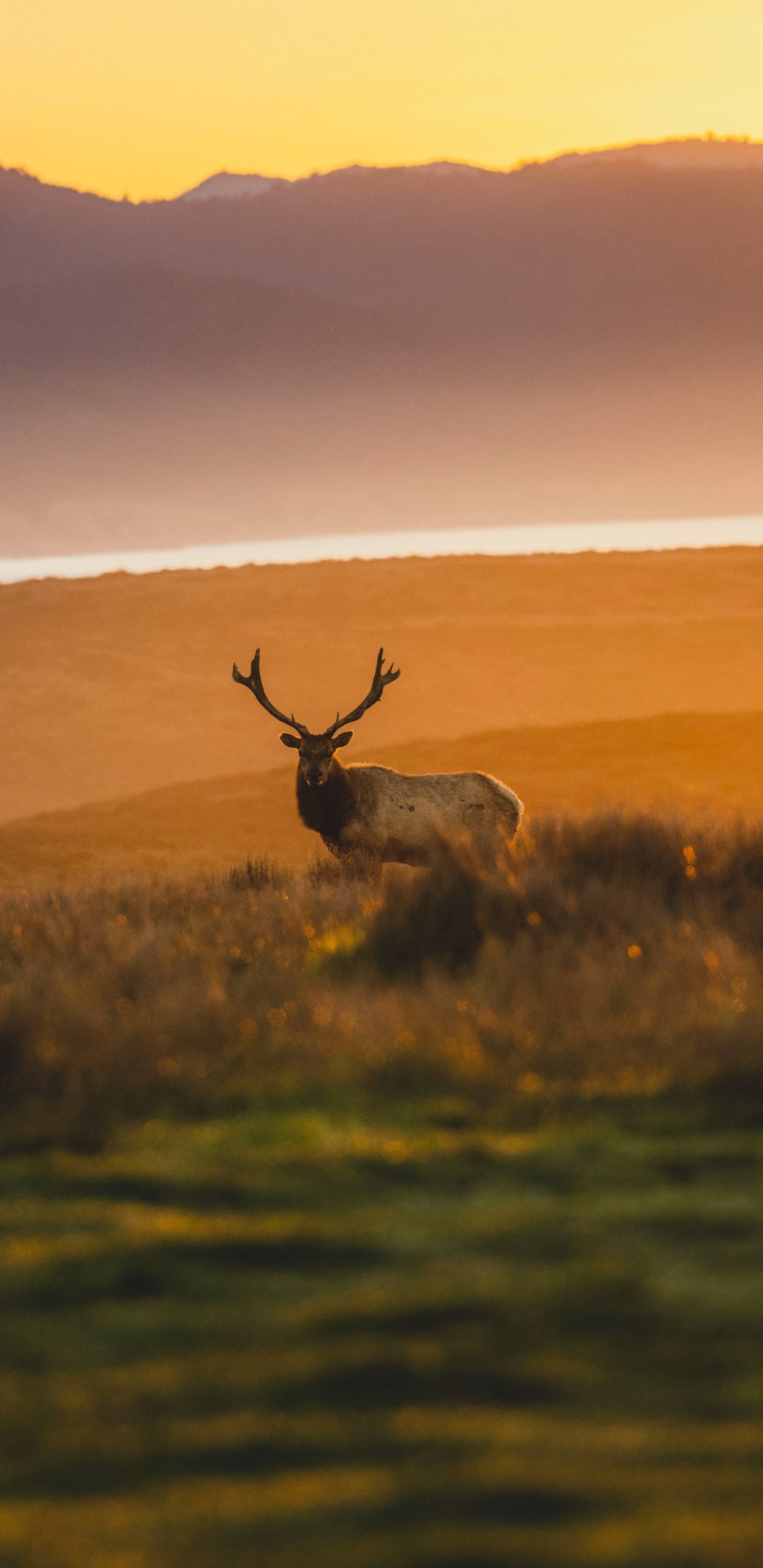 Wallpaper: deer, sunset, wildlife, wild animals - 1080x2220