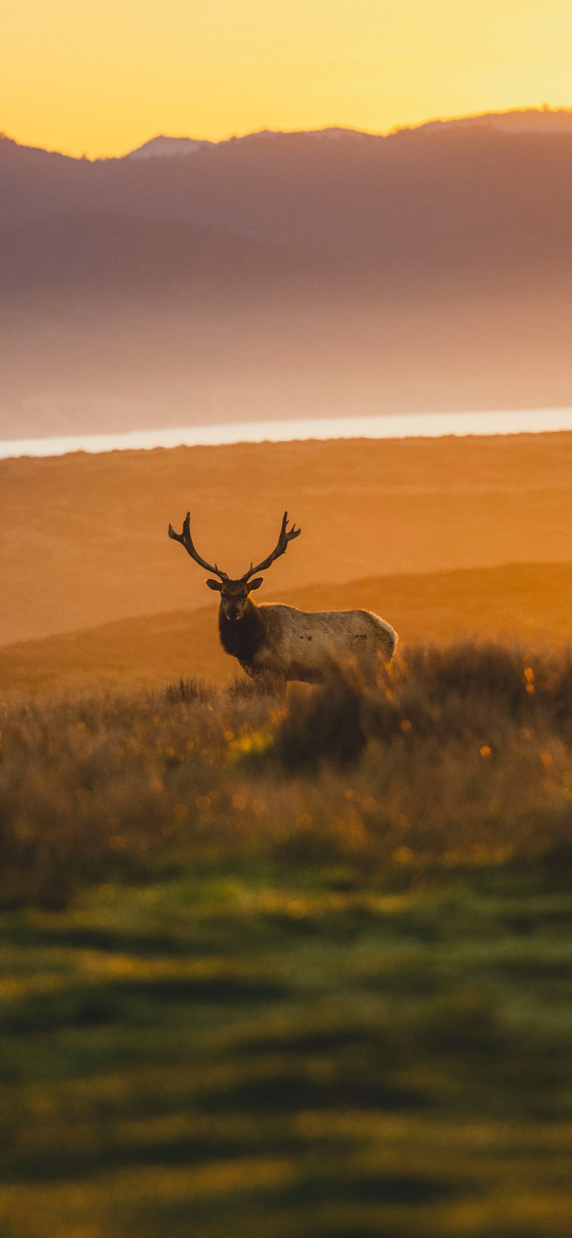 Wallpaper: deer, sunset, wildlife, wild animals - 1170x2532