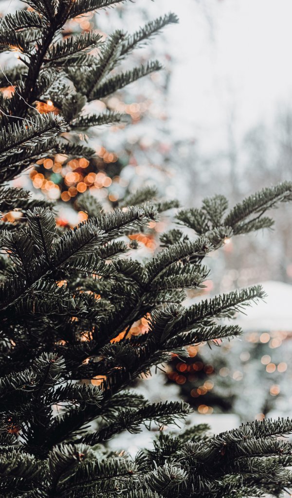 Wallpaper: spruce, winter, snow, New Year, holiday, street - 600x1024