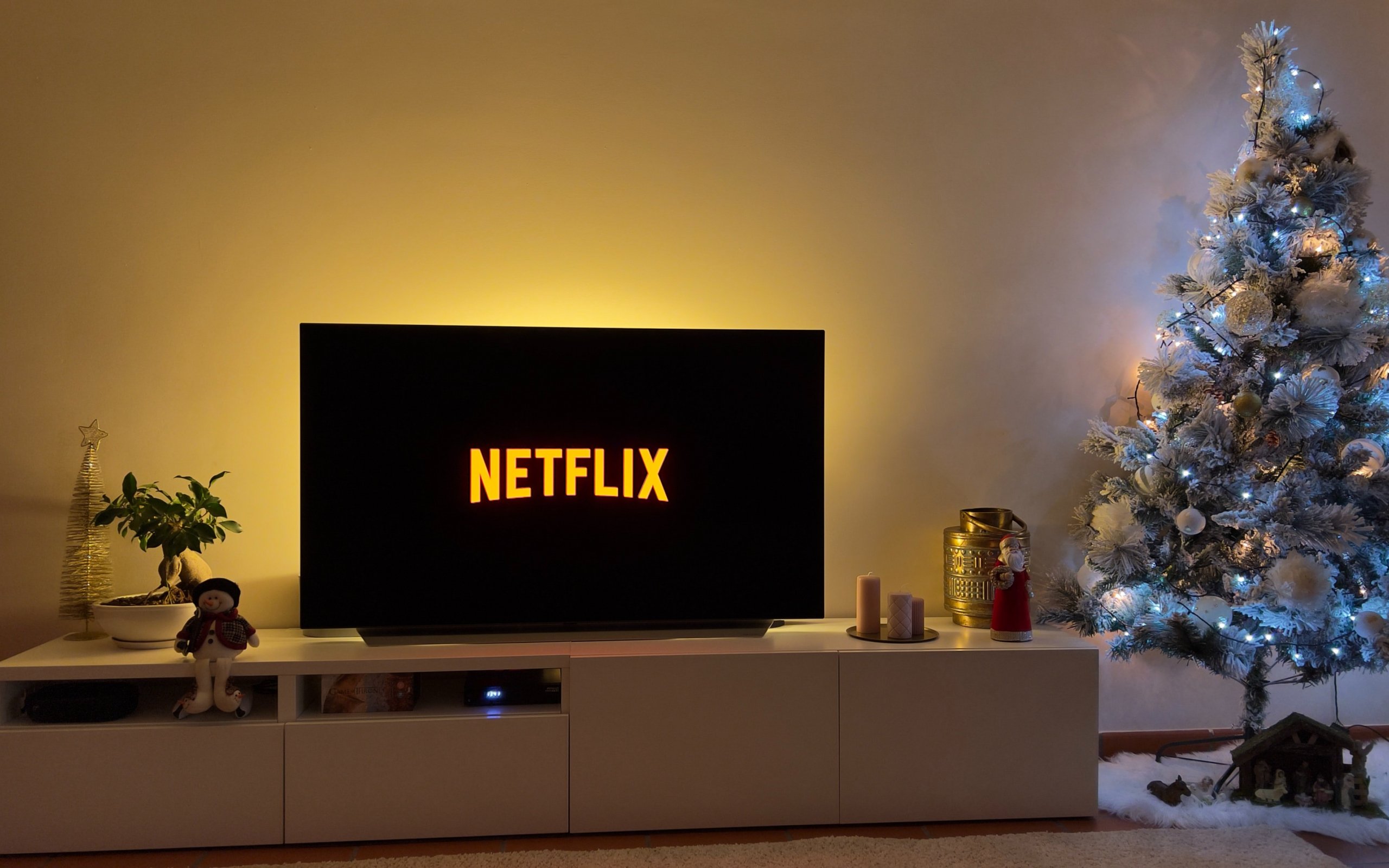 Wallpaper: netflix, Christmas tree, home comfort, house, evening - 2560x1600